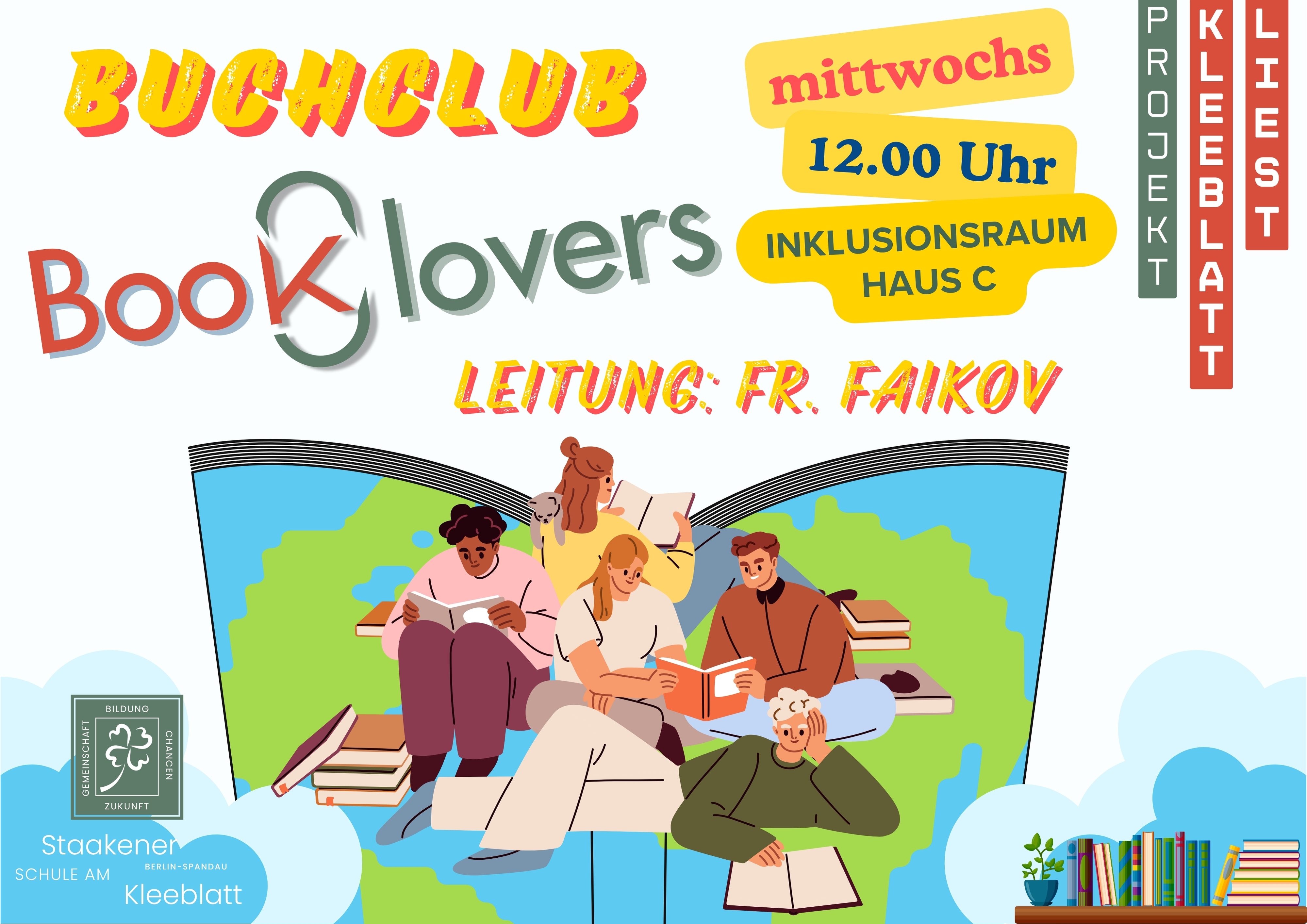 Gemeinsames Lesen verbindet! Frau Faikov lädt jeden Mittwoch in der Mittagspause zum neuen Buchclub „Book Clovers“ ein – ein Treffpunkt für alle, die gerne lesen, diskutieren und neue Bücher entdecken möchten. Doch damit nicht genug: Zusammen mit engagierten Kollegen hat sie vor, schon sehr bad auch an unserer Schule Autorenlesungen und Lesenächte zu organisieren, um das gemeinsame Erleben von Literatur zu fördern und Schüler aller Jahrgänge miteinander ins Gespräch über Bücher zu bringen.