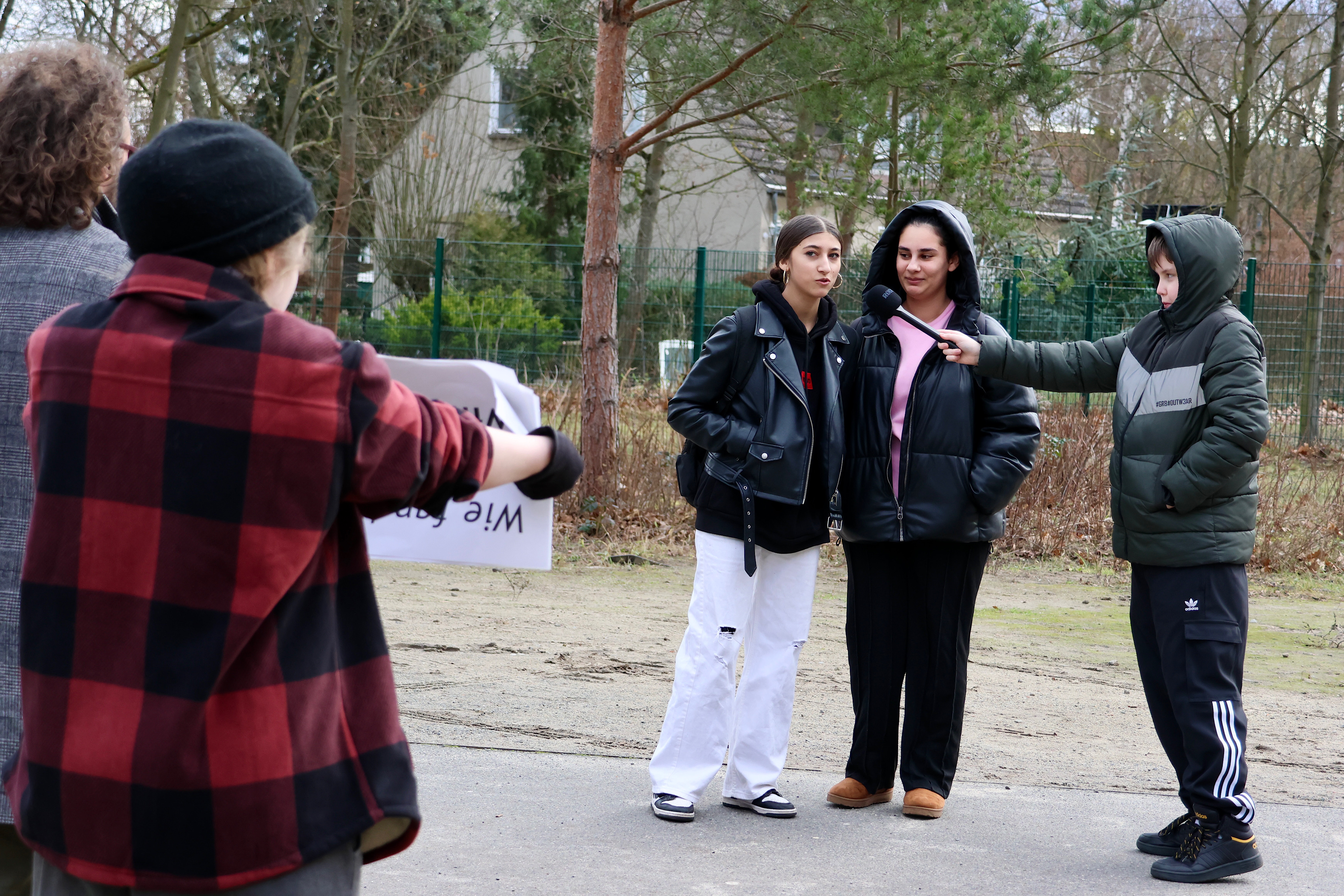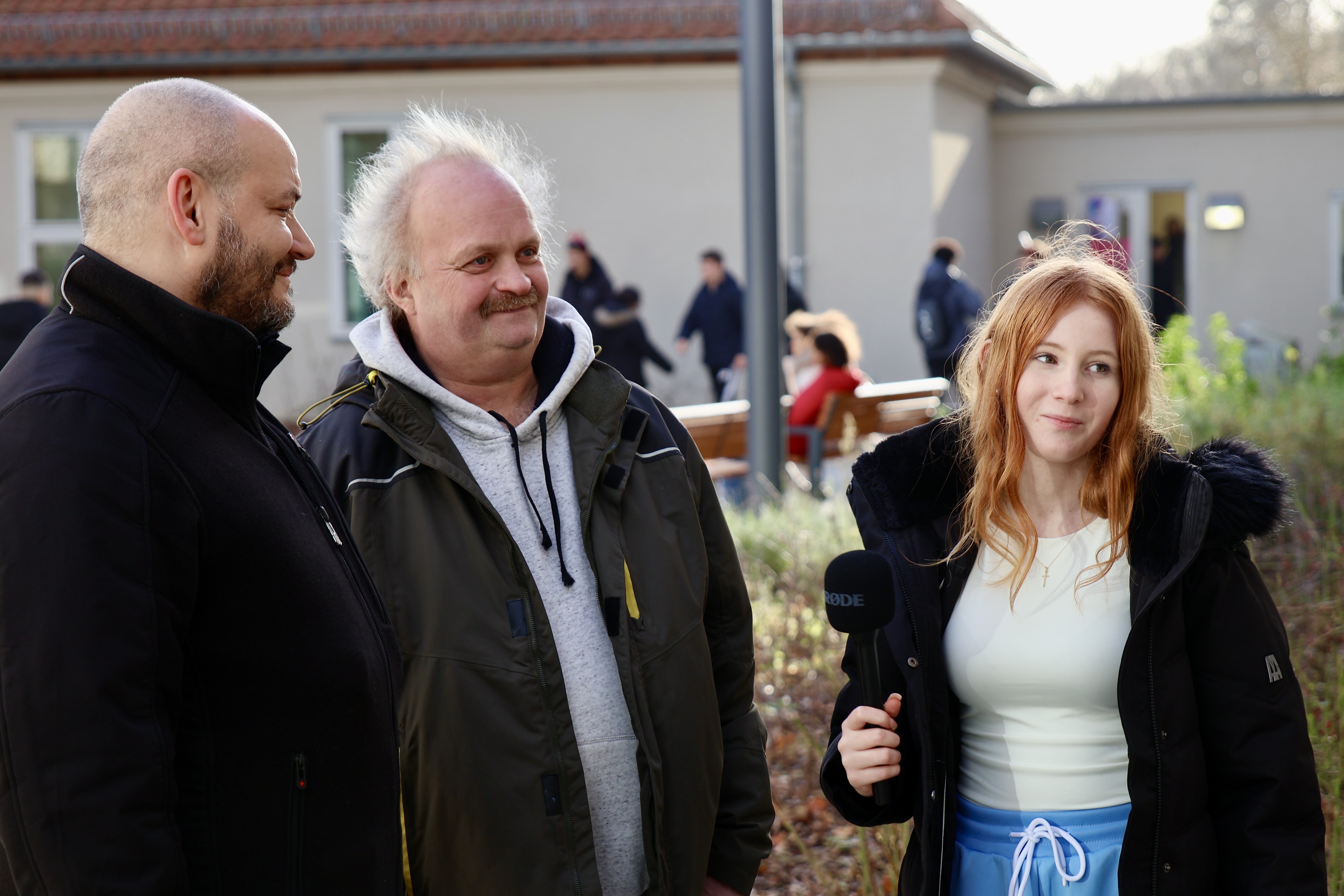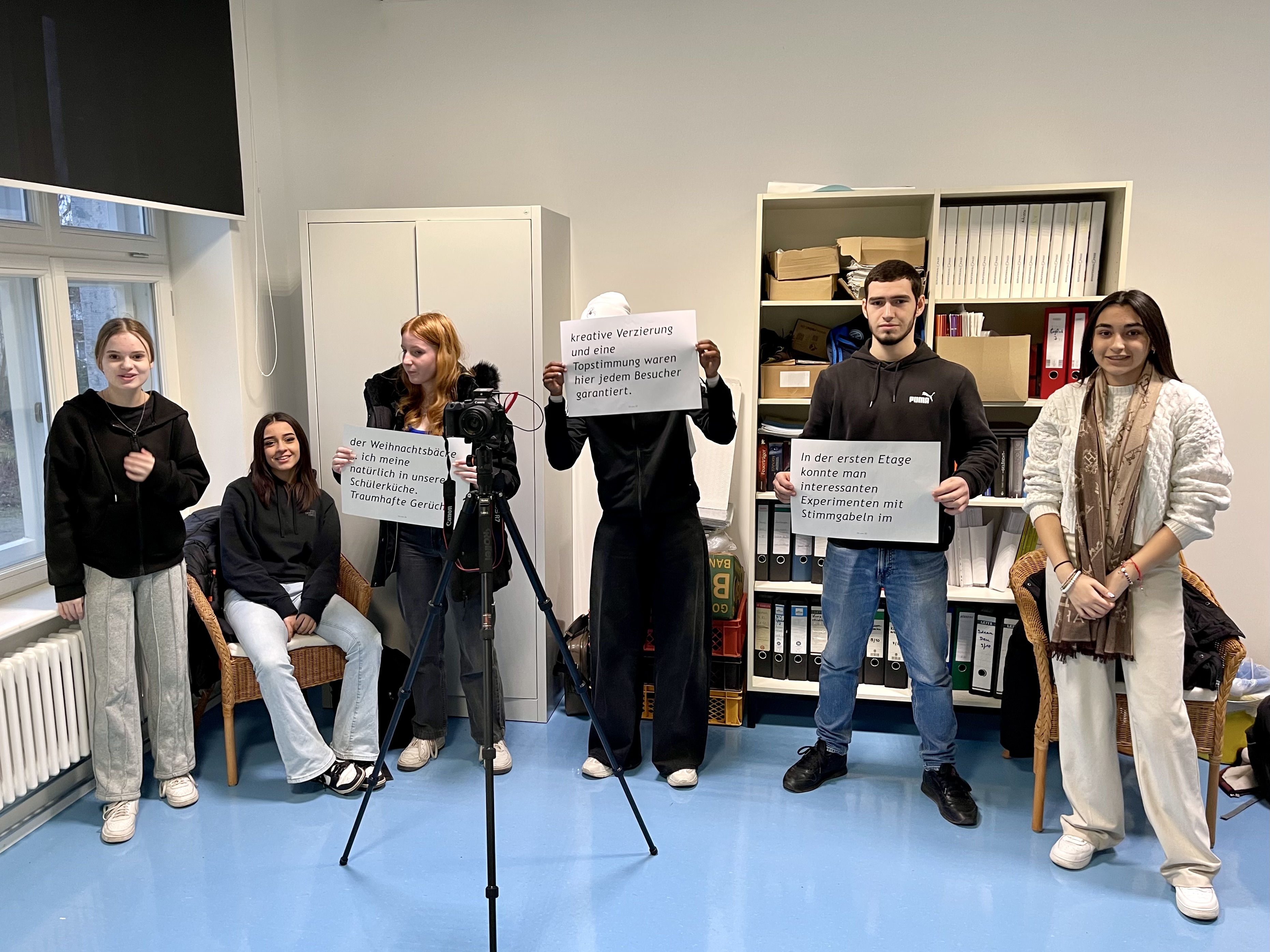 Kurz darauf traf unsere erste Bestellung ein: neue Mikrofone. Sofort nutzten wir die Gelegenheit, um unsere neuen Schulsozialarbeiter in der Aula ausführlich zu interviewen und das Gespräch videografisch festzuhalten. Die Mikrofone erwiesen sich als perfekte Ergänzung und verwandelten das schulische Setting in ein kleines, professionelles Studio. Unsere Nachwuchsreporter konnten direkt in ihre Rolle als echte Journalistinnen und Journalisten schlüpfen.
