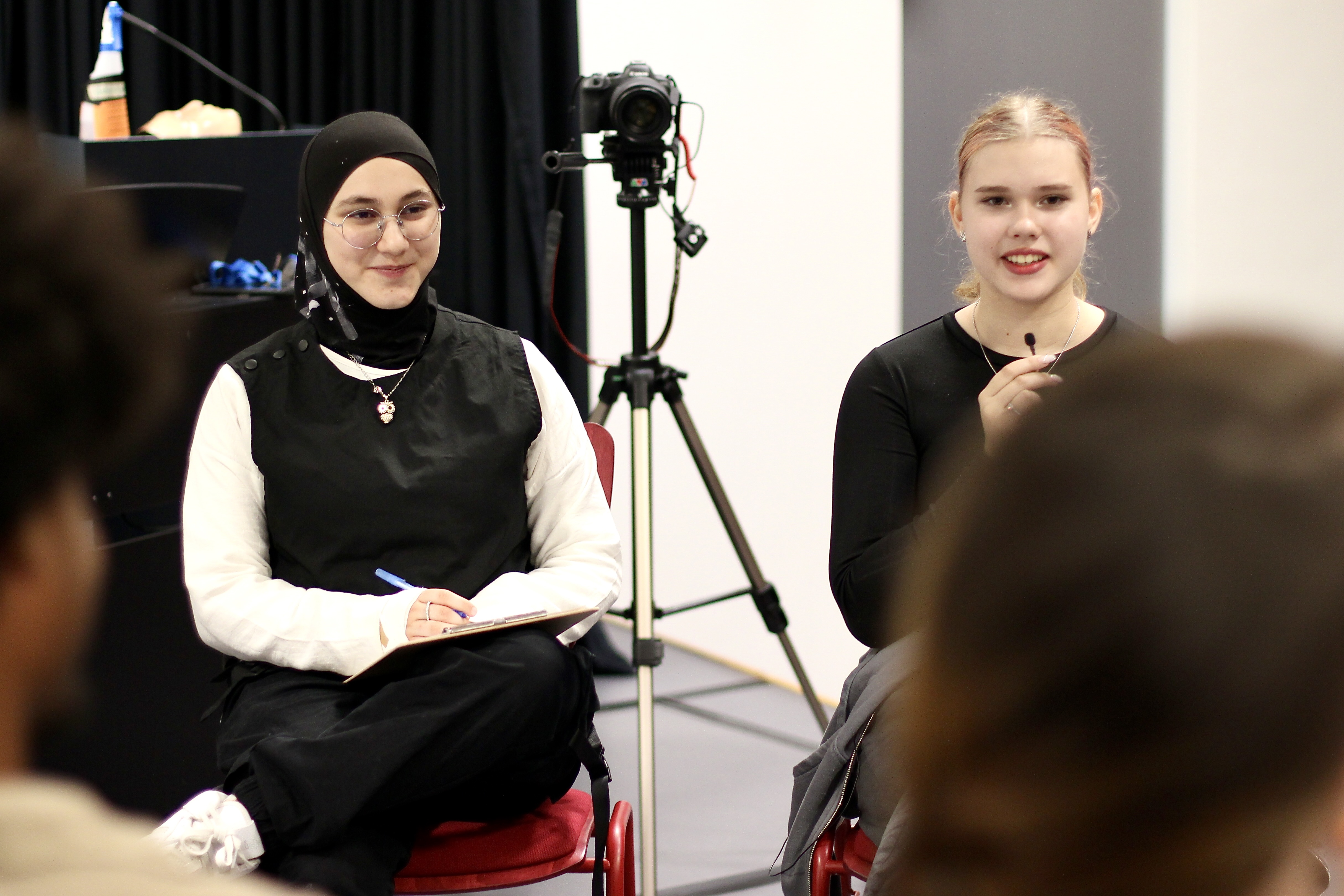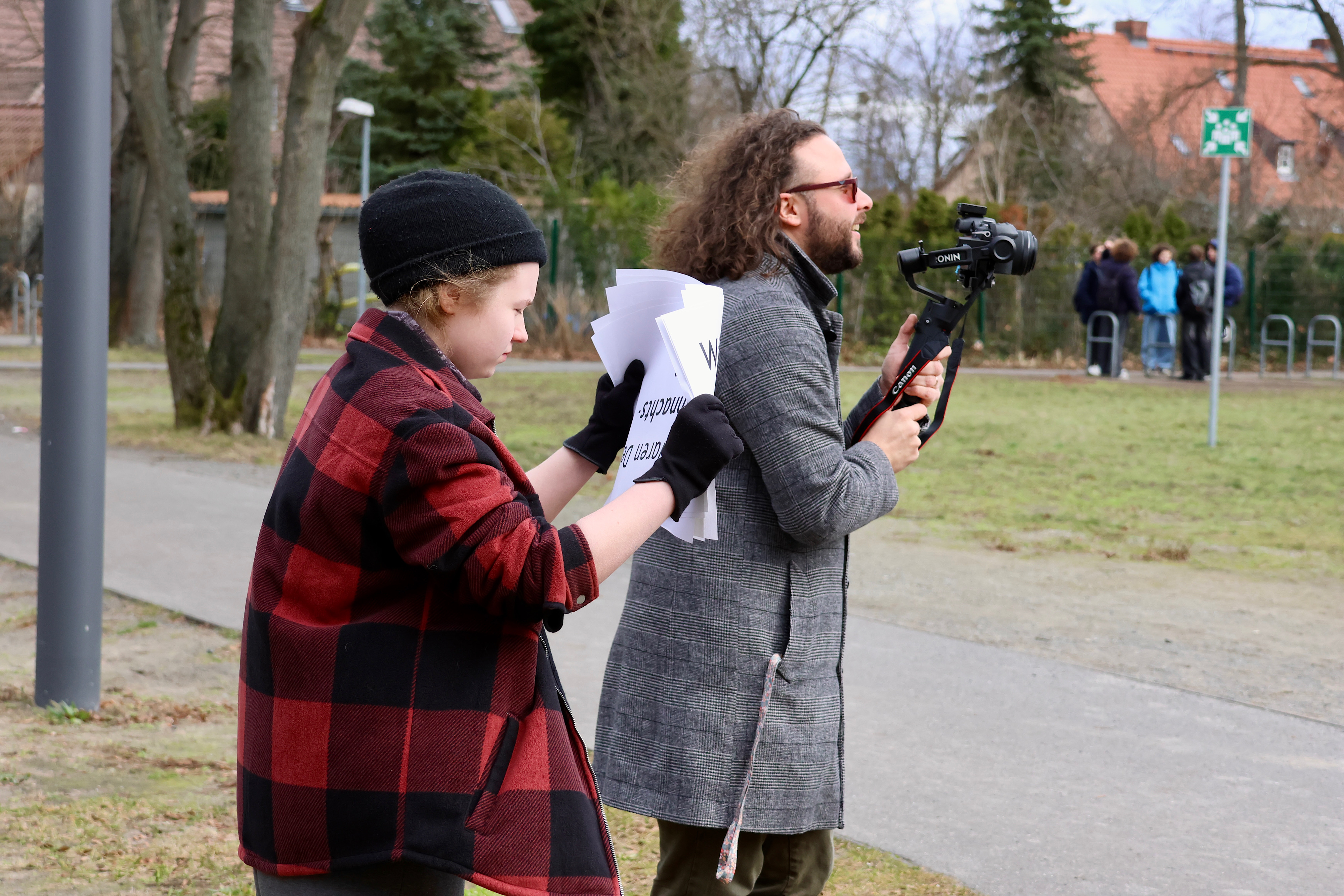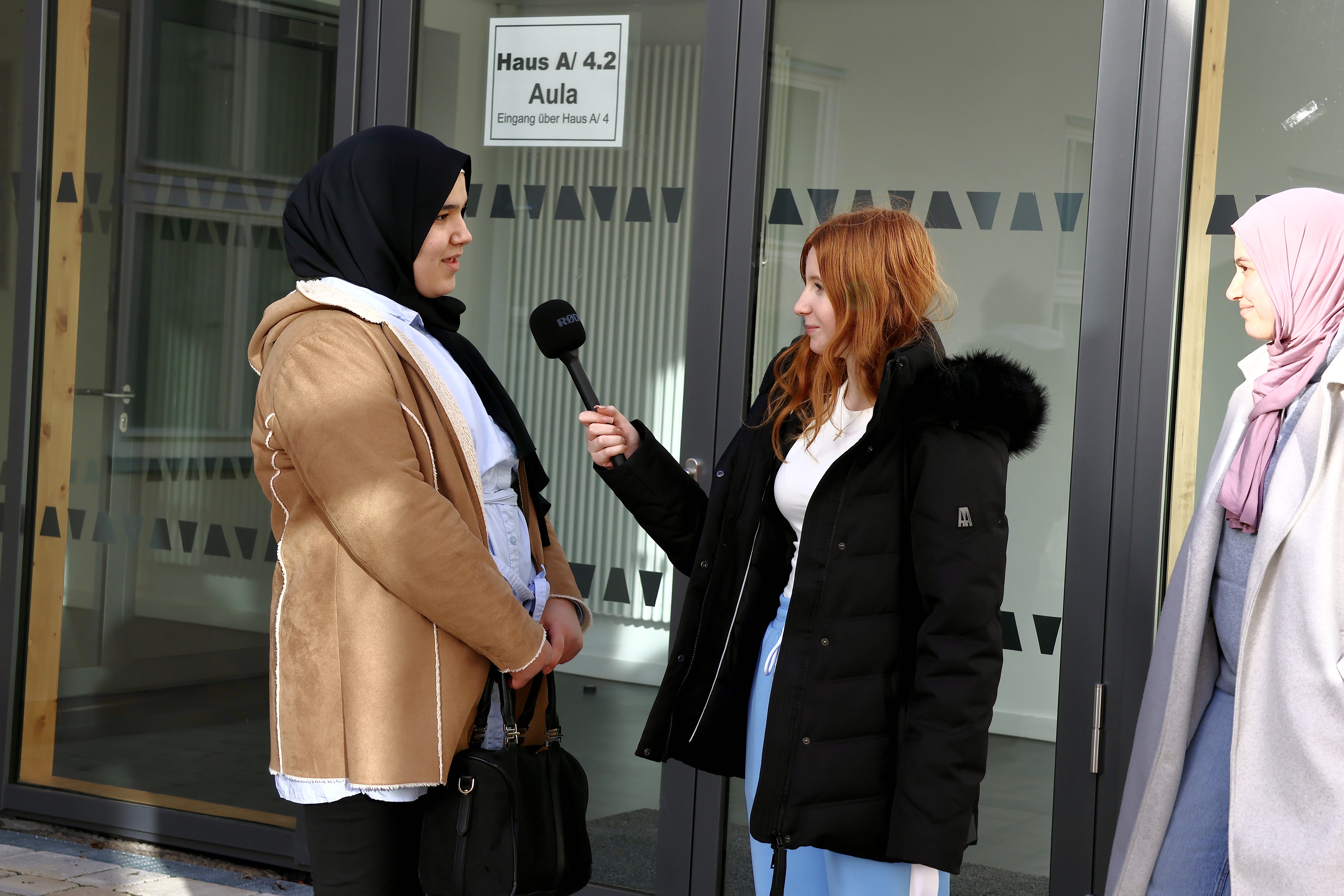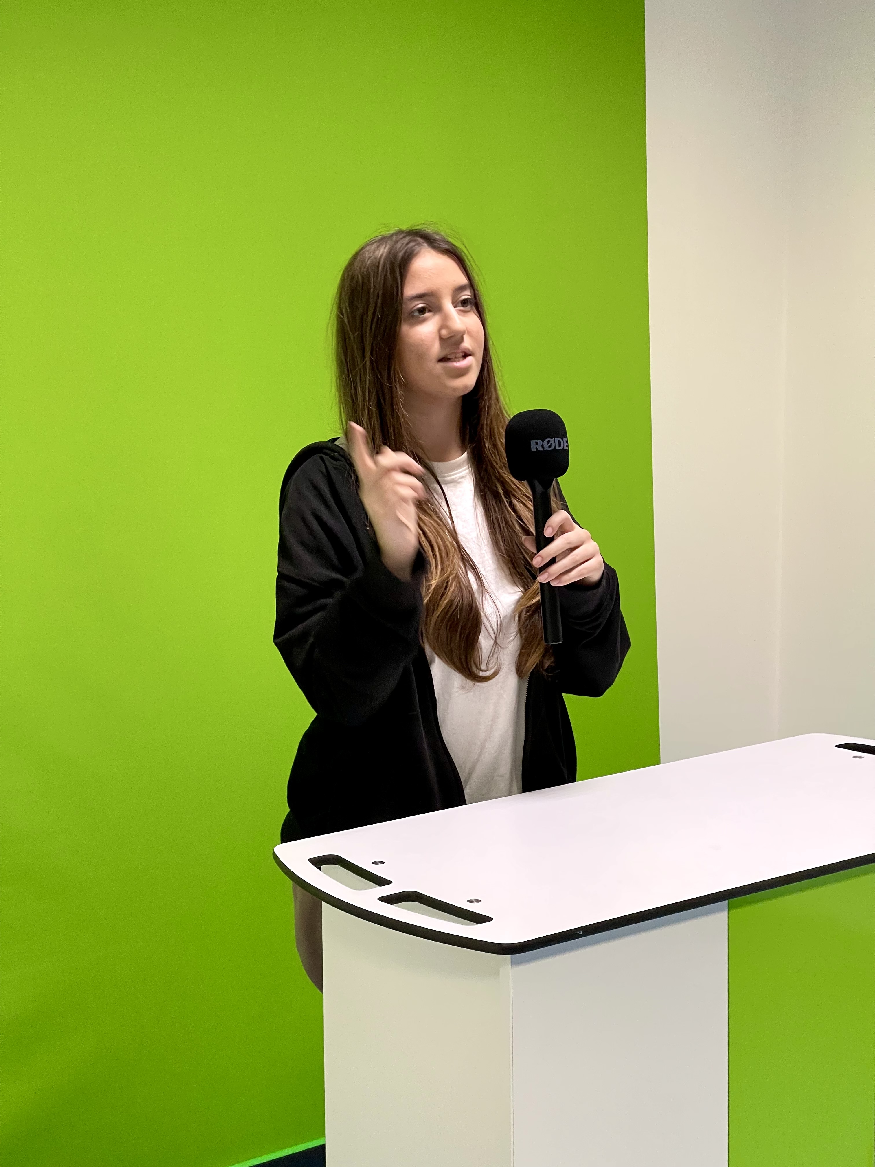 Kurz darauf traf unsere erste Bestellung ein: neue Mikrofone. Sofort nutzten wir die Gelegenheit, um unsere neuen Schulsozialarbeiter in der Aula ausführlich zu interviewen und das Gespräch videografisch festzuhalten. Die Mikrofone erwiesen sich als perfekte Ergänzung und verwandelten das schulische Setting in ein kleines, professionelles Studio. Unsere Nachwuchsreporter konnten direkt in ihre Rolle als echte Journalistinnen und Journalisten schlüpfen.