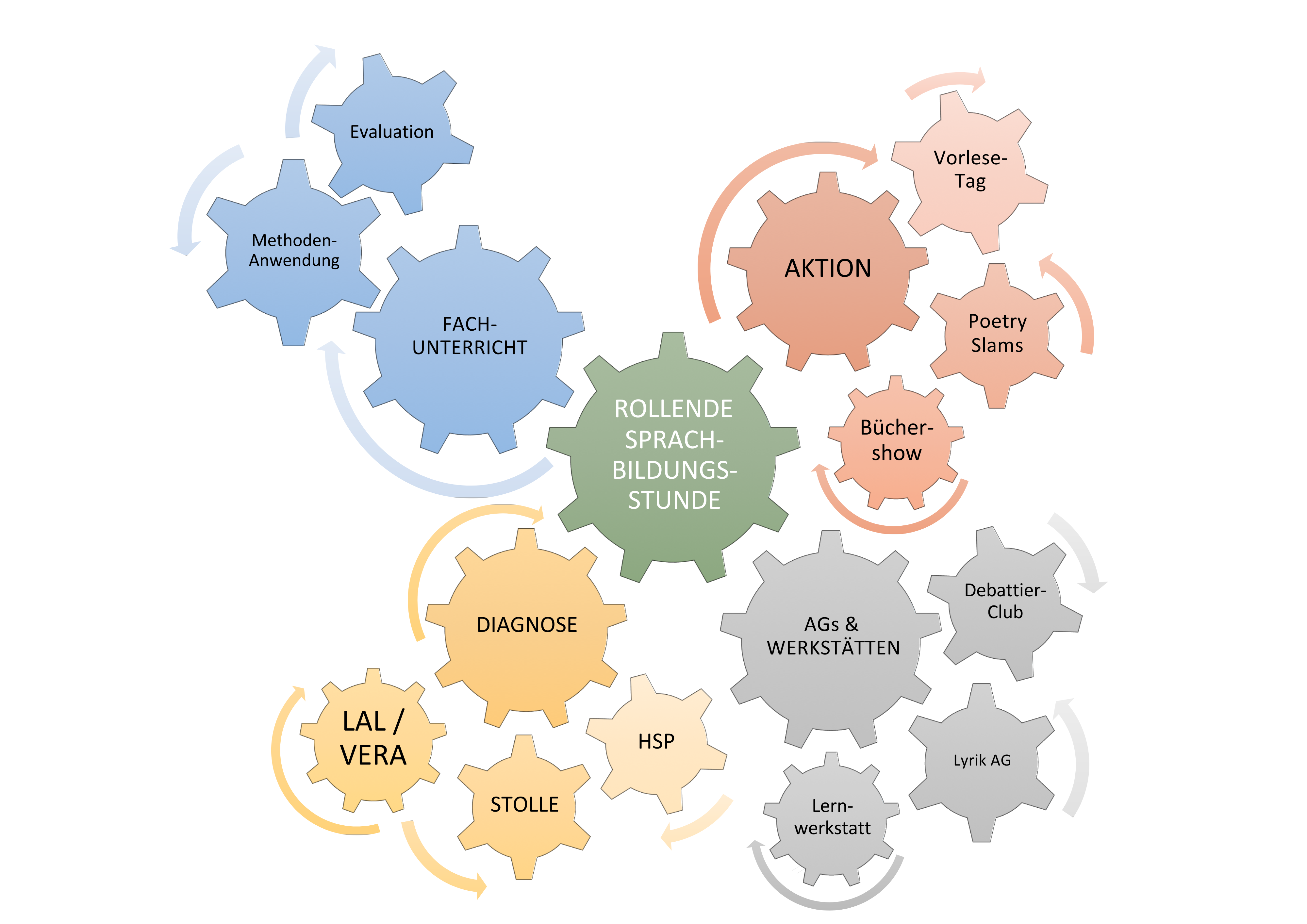 Ein zentrales Element ist die Arbeitsgruppe Sprachbildung, die Konzepte entwickelt, Methoden erprobt, evaluiert und allen Fachbereichen zur Verfügung stellt. Sie dient auch als Ansprechpartner für Kollegen, Schülerumfragen und die Weiterentwicklung unserer Maßnahmen.
